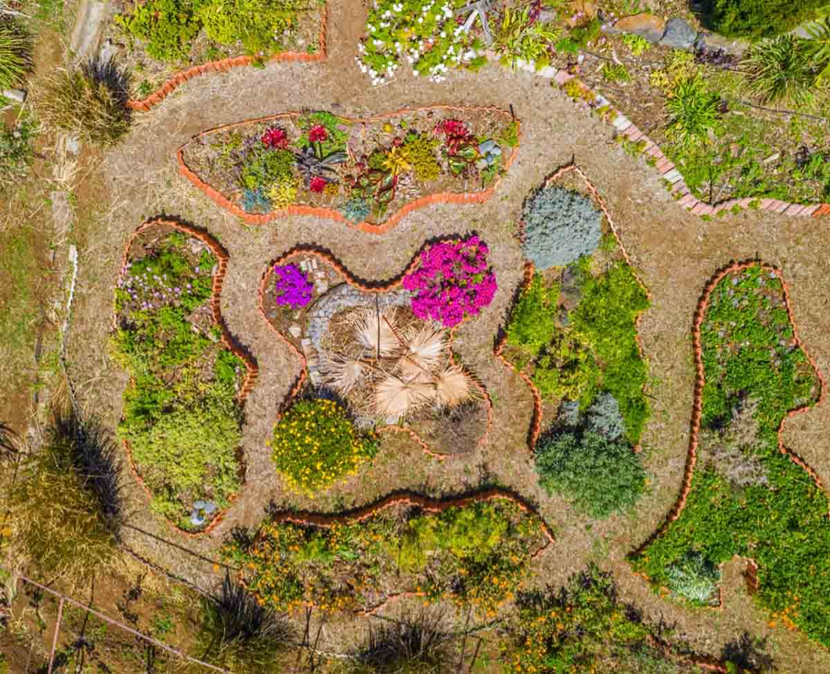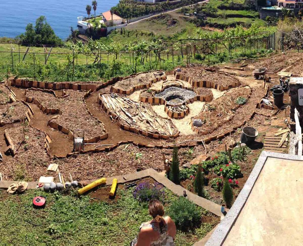 Projeto integrado em turismo rural onde foi desenhado uma horta mandala com lago na zona central e canteiro com sistema capilar de rega. Na fase inicial, os canteiros foram feitos em madeira e posteriormente com telhas.